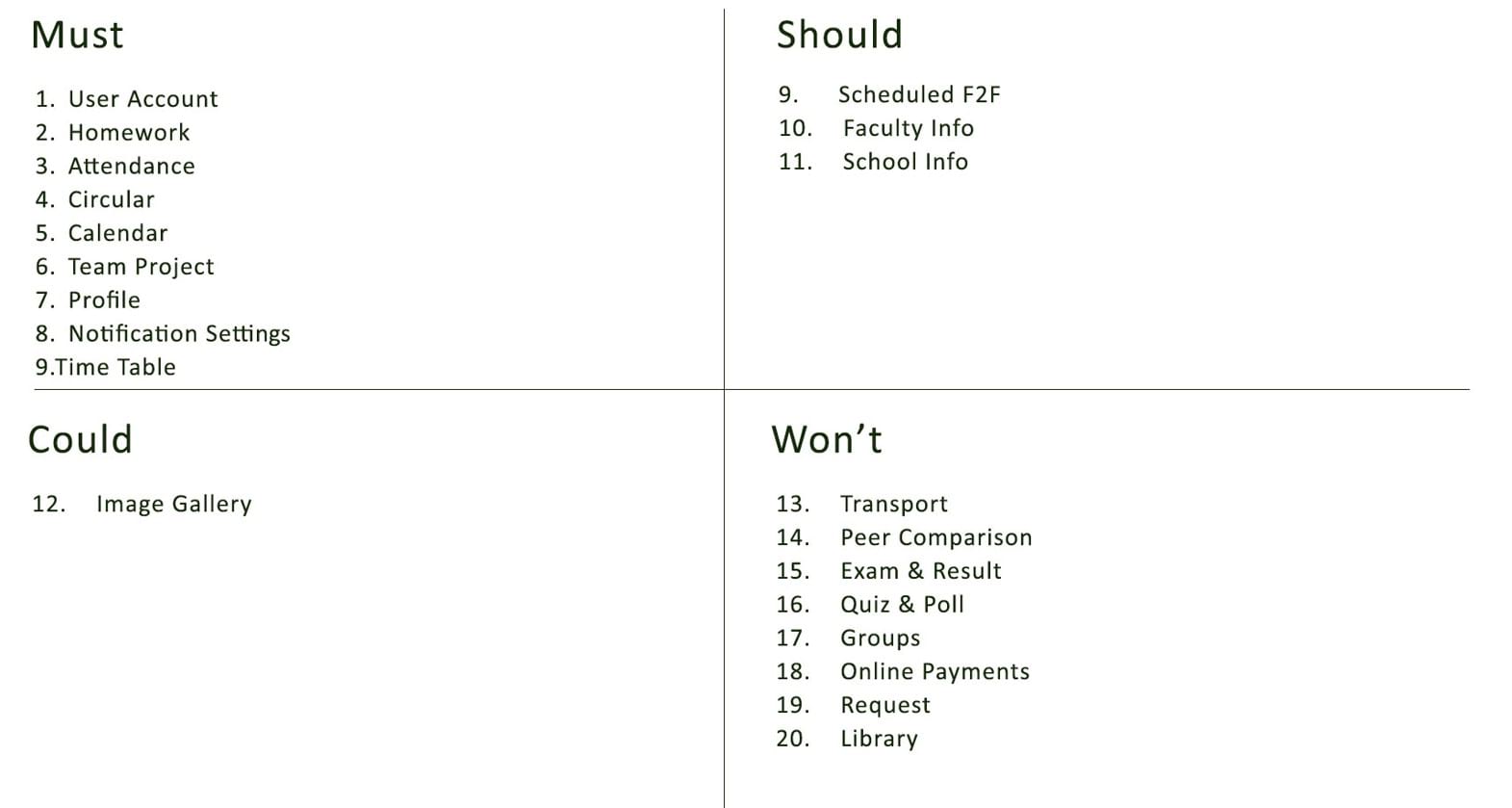 These are the list of all features what we can provide in our application (Consider only Student).
