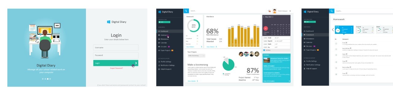 Hello! I always find starting a project interesting, I get opportunity to work with new people and learn about a new industry. I thought to design a digital diary(MS) for schools. Now a days it’s really very difficult to manage all the things on physical school diary even it’s little complicated too for parent to track the status of their children. So there must be something for-